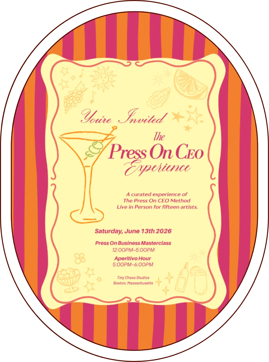 After the first Press On CEO Experience brought artists together from across the country last winter, we’re returning to Tiny Chaos Studios for a summer edition inspired by sunset colors, spritz tones, and warm summer energy.
