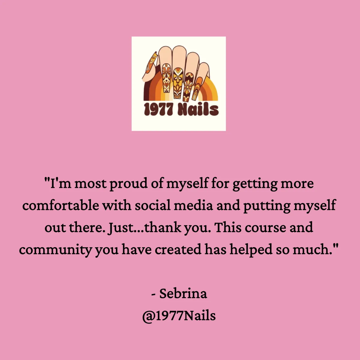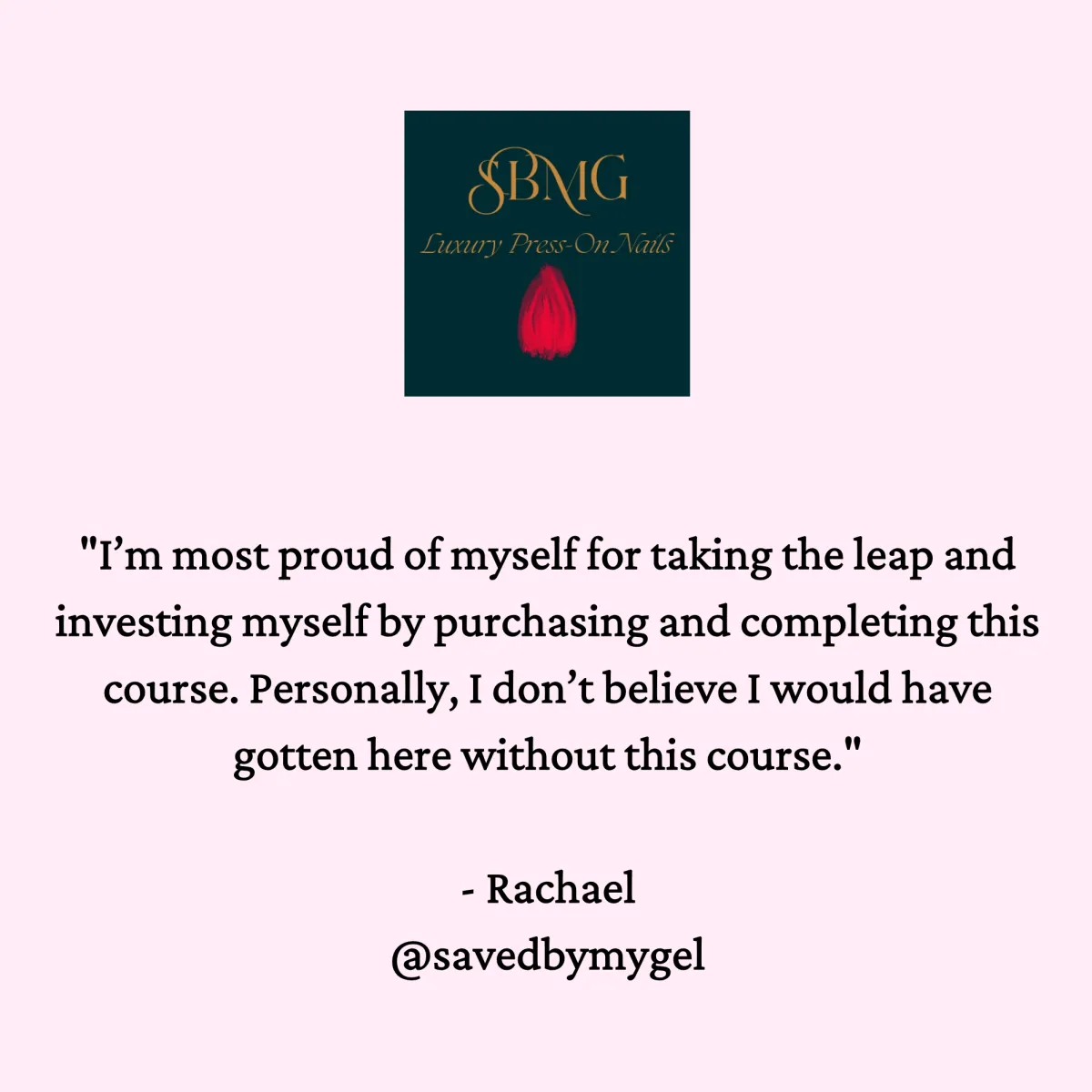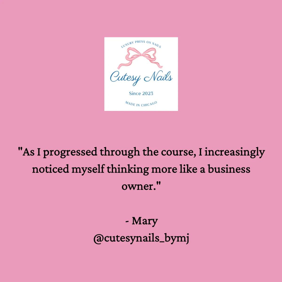 The best mentor and teacher around. I had been trying to launch my press on nail business for a while and let me tell you, having someone who not only has done this but is by far the Queen of Press Ons walk through the steps to success has been amazing.