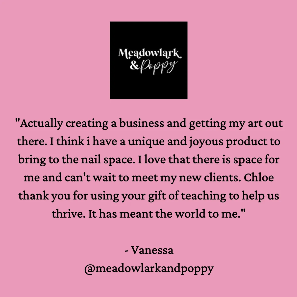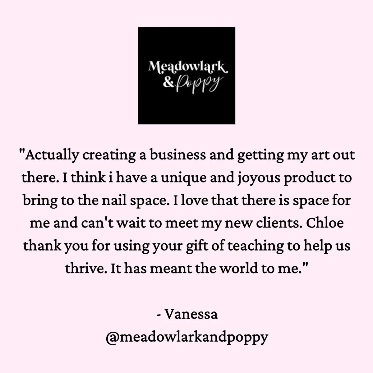 If you or anyone you know are at all interested in starting a press on nail business this is the woman to see! Chloe gives you the full map (no gatekeeping here), with boxes to check and meetings to keep you motivated to make progress and empower you to take the leap of faith! I couldn't have pulled all of this together in such a short time without her programs! Thank you so, so much Chloe!